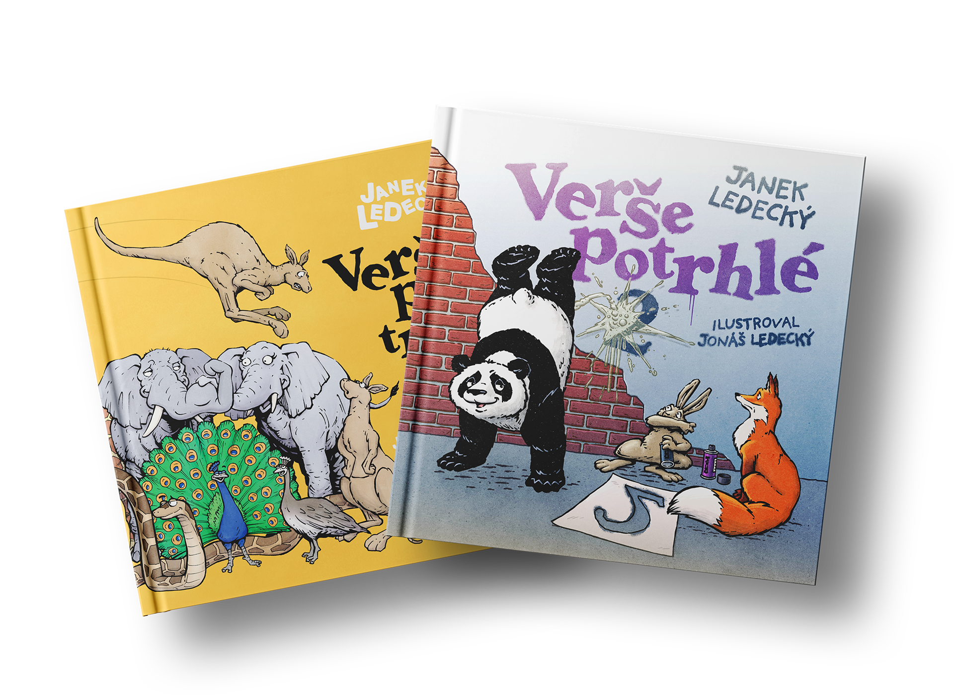 Prostořeké básničky s pointou se odehrávají ve zvířecí říši a napsal je Janek Ledecký. Ten tak zúročuje svou více než třicetiletou textařskou zkušenost v nové disciplíně. Na knihách navíc spolupracuje se svým synem, ilustrátorem Jonášem Ledeckým.